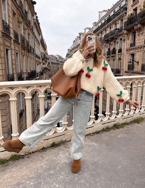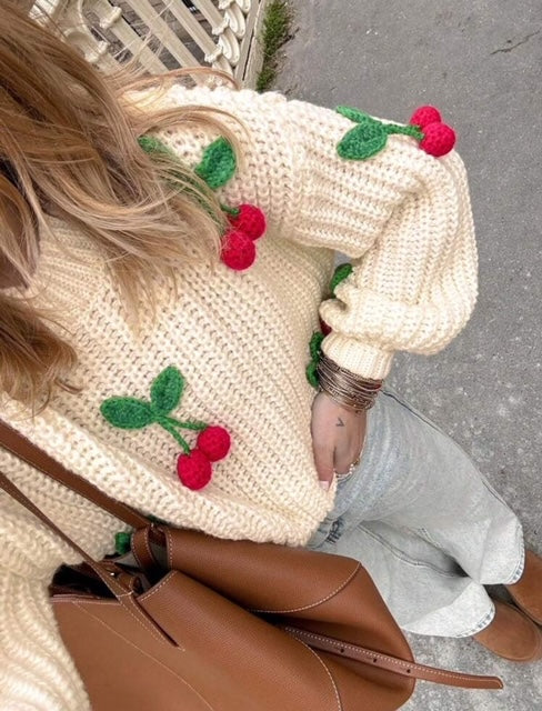 Maglia in viscosa con ciliegie applicate