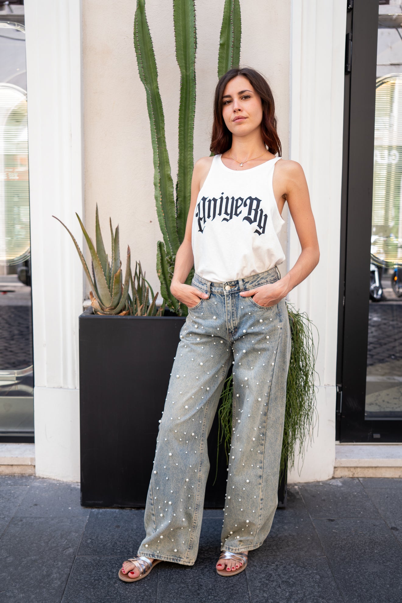 I jeans Perls GLM COUTURE uniscono un taglio a palazzo elegante a dettagli raffinati come le applicazioni di perle, che aggiungono un tocco di lusso discreto.